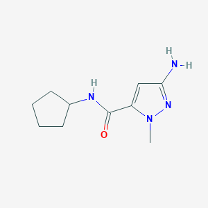 3-Amino-N-cyclopentyl-1-methyl-1H-pyrazole-5-carboxamide is a heterocyclic compound featuring a pyrazole ring. This compound is of significant interest in medicinal chemistry due to its potential biological activities and its role as an intermediate in the synthesis of various pharmaceuticals .