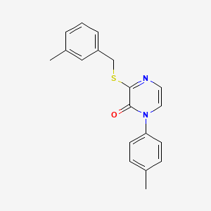 3-((3-methylbenzyl)thio)-1-(p-tolyl)pyrazin-2(1H)-one, identified by its CAS number 941978-22-9, is an organic compound belonging to the pyrazinone class. This compound has garnered attention due to its potential biological activity, particularly in medicinal chemistry and pharmacology. This article aims to provide a comprehensive overview of its biological activity, including mechanisms of action, comparative analysis with similar compounds, and relevant case studies.