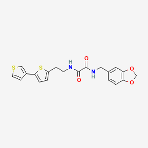 N1-(2-([2,3'-bithiophen]-5-yl)ethyl)-N2-(benzo[d][1,3]dioxol-5-ylmethyl)oxalamide is a complex organic compound that has garnered attention for its potential biological activities. This compound features a unique combination of structural elements, including bithiophene and benzo[d][1,3]dioxole moieties, which contribute to its pharmacological properties.