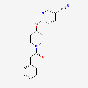 The mechanism of action of 6-((1-(2-Phenylacetyl)piperidin-4-yl)oxy)nicotinonitrile involves its interaction with specific molecular targets and pathways. The compound may bind to certain receptors or enzymes, modulating their activity and leading to various biological effects. The exact molecular targets and pathways can vary depending on the specific application and context of use.