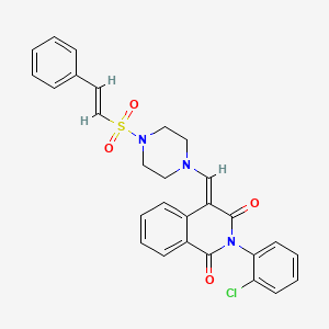 (4E)-2-(2-chlorophenyl)-4-[[4-[(E)-2-phenylethenyl]sulfonylpiperazin-1-yl]methylidene]isoquinoline-1,3-dione is a useful research compound. Its molecular formula is C28H24ClN3O4S and its molecular weight is 534.03. The purity is usually 95%.