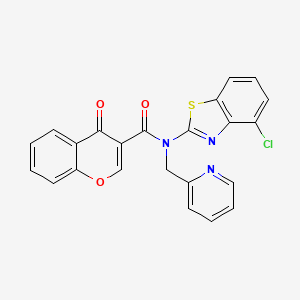 N-(4-chloro-1,3-benzothiazol-2-yl)-4-oxo-N-[(pyridin-2-yl)methyl]-4H-chromene-3-carboxamide is a complex organic compound that belongs to the class of benzothiazole derivatives. These compounds are known for their diverse biological activities, including anti-inflammatory, antibacterial, and anticancer properties . The unique structure of this compound, which includes a benzothiazole ring, a chromene moiety, and a pyridine group, contributes to its wide range of applications in scientific research and industry.