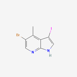 The mechanism of action of 5-bromo-3-iodo-4-methyl-1H-pyrrolo[2,3-b]pyridine, particularly in its role as a kinase inhibitor, involves binding to the ATP-binding site of the target kinase. This binding prevents the phosphorylation of downstream signaling proteins, thereby inhibiting the signaling pathways that promote cell proliferation and survival. The compound’s molecular structure allows it to interact with specific amino acid residues in the kinase’s active site, leading to its inhibitory effects .