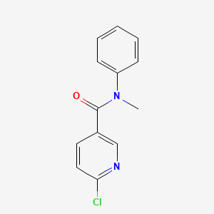 The synthesis of 6-chloro-N-methyl-N-phenylpyridine-3-carboxamide typically involves the reaction of 6-chloronicotinic acid with thionyl chloride to form the corresponding acid chloride. This intermediate is then reacted with N-methyl-N-phenylamine to yield the desired product. The reaction conditions usually involve the use of an inert atmosphere, such as nitrogen or argon, and the reactions are carried out at elevated temperatures to ensure complete conversion.