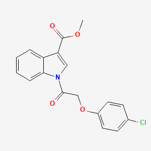 Methyl 1-(2-(4-chlorophenoxy)acetyl)-1H-indole-3-carboxylate stands out due to its unique combination of the indole core with the chlorophenoxyacetyl group, which imparts distinct chemical and biological properties. This uniqueness makes it a valuable compound for various research and industrial applications .