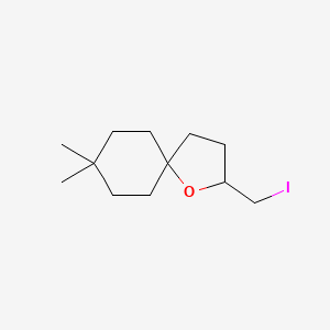 The synthesis of 2-(Iodomethyl)-8,8-dimethyl-1-oxaspiro[4.5]decane typically involves the reaction of a suitable precursor with iodine in the presence of a base. One common method involves the use of 8,8-dimethyl-1-oxaspiro[4.5]decane as the starting material, which is then treated with iodomethane and a base such as potassium carbonate. The reaction is carried out under reflux conditions to ensure complete conversion of the starting material to the desired product .