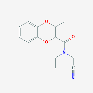 What sets N-(cyanomethyl)-N-ethyl-3-methyl-2,3-dihydro-1,4-benzodioxine-2-carboxamide apart is its unique benzodioxine ring structure, which imparts specific chemical properties and reactivity. This makes it particularly valuable in the synthesis of complex organic molecules and potential pharmaceutical agents .