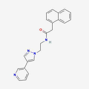 2-(naphthalen-1-yl)-N-{2-[4-(pyridin-3-yl)-1H-pyrazol-1-yl]ethyl}acetamide is unique due to its combination of three distinct aromatic rings (naphthalene, pyridine, and pyrazole) and its potential for diverse chemical modifications. This structural complexity allows for a wide range of applications and makes it a valuable compound in scientific research.