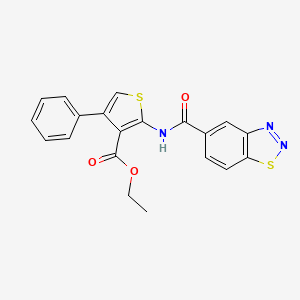 ETHYL 2-(1,2,3-BENZOTHIADIAZOLE-5-AMIDO)-4-PHENYLTHIOPHENE-3-CARBOXYLATE is a synthetic compound that belongs to the class of benzothiadiazole derivatives. This compound has garnered attention in medicinal chemistry due to its potential biological activities, including antimicrobial, anticancer, and anti-inflammatory properties. This article reviews the biological activity of this compound based on diverse sources and includes data tables and relevant case studies.