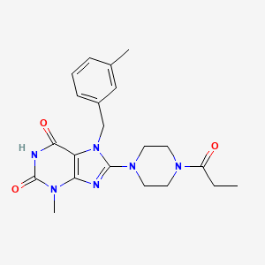 3-methyl-7-[(3-methylphenyl)methyl]-8-(4-propanoylpiperazin-1-yl)-2,3,6,7-tetrahydro-1H-purine-2,6-dione is a useful research compound. Its molecular formula is C21H26N6O3 and its molecular weight is 410.478. The purity is usually 95%.