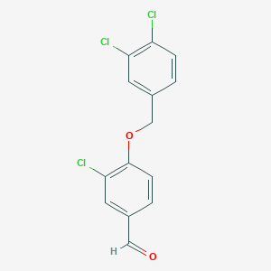 3-Chloro-4-[(3,4-dichlorobenzyl)oxy]benzaldehyde is an organic compound with the molecular formula C14H9Cl3O2. It is characterized by the presence of three chlorine atoms and an aldehyde group attached to a benzene ring. This compound is primarily used in research and industrial applications due to its unique chemical properties .
