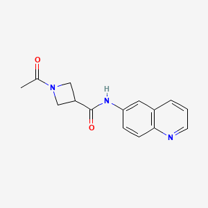 1-acetyl-N-(quinolin-6-yl)azetidine-3-carboxamide is a compound that has garnered attention in medicinal chemistry due to its potential biological activities, particularly in the context of cancer research and other therapeutic areas. This article reviews the biological activity of this compound, focusing on its mechanisms of action, efficacy in various biological systems, and relevant case studies.