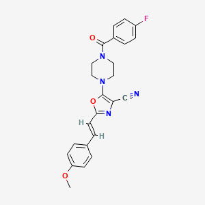5-[4-(4-fluorobenzoyl)piperazin-1-yl]-2-[(E)-2-(4-methoxyphenyl)ethenyl]-1,3-oxazole-4-carbonitrile is a complex organic compound that features a piperazine ring, a fluorobenzoyl group, and an oxazole ring