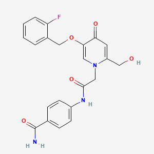 C1=CC=C(C(=C1)COC2=CN(C(=CC2=O)CO)CC(=O)NC3=CC=C(C=C3)C(=O)N)F | |