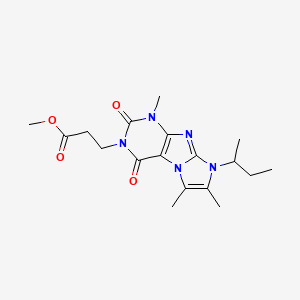 Methyl 3-[1,6,7-trimethyl-8-(methylpropyl)-2,4-dioxo-1,3,5-trihydro-4-imidazol ino[1,2-h]purin-3-yl]propanoate is a useful research compound. Its molecular formula is C18H25N5O4 and its molecular weight is 375.429. The purity is usually 95%.