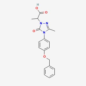 The compound 2-{4-[4-(benzyloxy)phenyl]-3-methyl-5-oxo-4,5-dihydro-1H-1,2,4-triazol-1-yl}propanoic acid is a derivative of the 1,2,4-triazole class, which has garnered attention due to its diverse biological activities. This article aims to provide a comprehensive overview of its biological activity, including mechanisms of action, pharmacological effects, and relevant case studies.