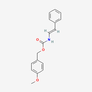 The mechanism of action of (4-methoxyphenyl)methyl N-[(E)-2-phenylethenyl]carbamate involves its interaction with specific molecular targets. The carbamate group can inhibit enzymes by forming a covalent bond with the active site, leading to the inactivation of the enzyme. This mechanism is similar to that of other carbamate-based inhibitors used in medicine and agriculture .