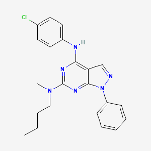 The mechanism by which N6-butyl-N4-(4-chlorophenyl)-N6-methyl-1-phenyl-1H-pyrazolo[3,4-d]pyrimidine-4,6-diamine exerts its effects involves its interaction with specific molecular targets. These interactions can modulate various biochemical pathways, leading to the desired biological or therapeutic outcomes. The exact molecular targets and pathways involved depend on the specific application and context in which the compound is used.