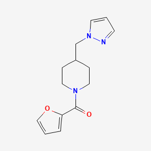 The mechanism of action of 1-(furan-2-carbonyl)-4-[(1H-pyrazol-1-yl)methyl]piperidine depends on its specific application. In medicinal chemistry, it may interact with molecular targets such as enzymes or receptors, modulating their activity. The furan and pyrazole rings can participate in hydrogen bonding and π-π interactions, which are crucial for binding to biological targets.