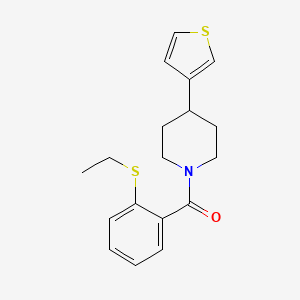The synthesis of (2-(Ethylthio)phenyl)(4-(thiophen-3-yl)piperidin-1-yl)methanone typically involves multi-step organic reactions. One common approach is to start with the thiophene and piperidine precursors, which are then subjected to various condensation and substitution reactions to form the final product. Specific reaction conditions, such as temperature, solvents, and catalysts, are optimized to achieve high yields and purity.