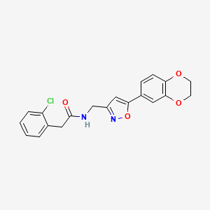 The compound 2-(2-chlorophenyl)-N-((5-(2,3-dihydrobenzo[b][1,4]dioxin-6-yl)isoxazol-3-yl)methyl)acetamide is a synthetic derivative that has garnered attention in medicinal chemistry due to its potential biological activities. This article explores its pharmacological properties, mechanisms of action, and relevant case studies.