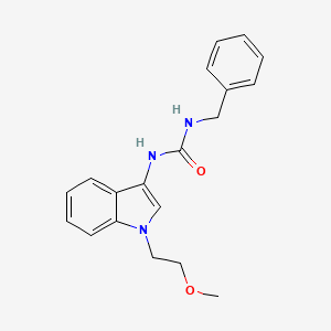 1-benzyl-3-(1-(2-methoxyethyl)-1H-indol-3-yl)urea is an organic compound derived from the indole family, known for its diverse biological activities. The synthesis of this compound typically involves the reaction of indole derivatives with isocyanates, leading to the formation of urea linkages that enhance its pharmacological properties.