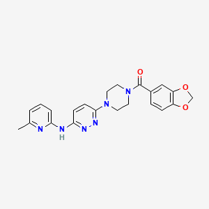 The compound 6-[4-(2H-1,3-benzodioxole-5-carbonyl)piperazin-1-yl]-N-(6-methylpyridin-2-yl)pyridazin-3-amine is a complex organic molecule that incorporates multiple heterocyclic structures, including benzodioxole, piperazine, and pyridazine. Its unique structural features suggest potential for diverse biological activities, making it a candidate for further pharmacological research.