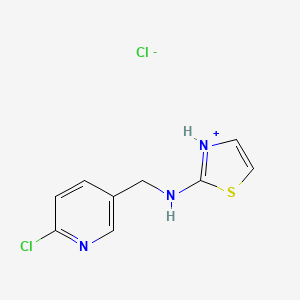 The mechanism of action of 2-{[(6-Chloro-3-pyridinyl)methyl]amino}-1,3-thiazol-3-ium chloride involves its interaction with specific molecular targets. The compound can interfere with the function of enzymes and receptors, leading to various biological effects. For example, it may inhibit the activity of certain enzymes involved in microbial metabolism, resulting in antimicrobial activity .