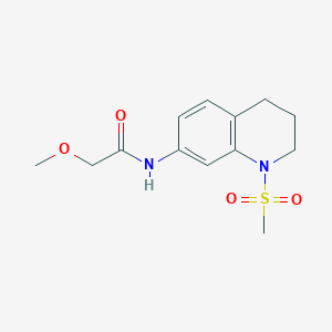 The mechanism of action of N-(1-methanesulfonyl-1,2,3,4-tetrahydroquinolin-7-yl)-2-methoxyacetamide involves its interaction with specific molecular targets, such as enzymes or receptors. The methanesulfonyl group can act as an electrophile, facilitating the formation of covalent bonds with nucleophilic sites on proteins or other biomolecules. This interaction can modulate the activity of the target, leading to various biological effects.