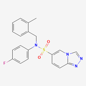 Synthetic Routes and Reaction Conditions: The synthesis of N-(4-fluorophenyl)-N-[(2-methylphenyl)methyl]-[1,2,4]triazolo[4,3-a]pyridine-6-sulfonamide typically involves multi-step organic reactions. The process begins with the preparation of the triazolopyridine core, followed by the introduction of the sulfonamide group and the fluorophenyl and methylphenyl substituents. Common reagents used in these reactions include sulfonyl chlorides, fluorobenzenes, and methylbenzenes, under conditions such as refluxing in organic solvents and the use of catalysts like palladium or copper.