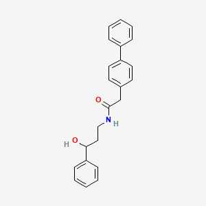 The synthesis of 2-([1,1’-biphenyl]-4-yl)-N-(3-hydroxy-3-phenylpropyl)acetamide typically involves the reaction of 4-biphenylacetic acid with 3-hydroxy-3-phenylpropylamine. The reaction is carried out in the presence of a coupling reagent such as dicyclohexylcarbodiimide (DCC) or 1-ethyl-3-(3-dimethylaminopropyl)carbodiimide (EDC) to facilitate the formation of the amide bond .