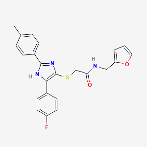 2-{[5-(4-fluorophenyl)-2-(4-methylphenyl)-1H-imidazol-4-yl]sulfanyl}-N-[(furan-2-yl)methyl]acetamide is a complex organic compound that features a unique combination of functional groups, including imidazole, sulfanyl, and furan moieties