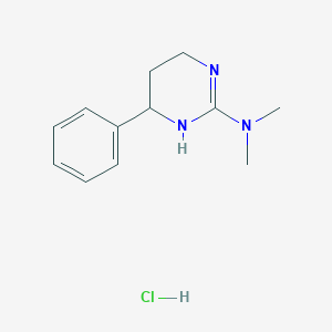 The synthesis of N,N-dimethyl-4-phenyl-1,4,5,6-tetrahydropyrimidin-2-amine hydrochloride typically involves the cyclization of appropriate precursors under specific conditions. One common method involves the reaction of N,N-dimethyl-1-phenyl-1,3-propanediamine with formamide in the presence of a catalyst such as hydrochloric acid. The reaction is carried out under reflux conditions, leading to the formation of the desired tetrahydropyrimidine ring .