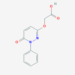 The mechanism of action of 2-[(6-Oxo-1-phenyl-1,6-dihydro-3-pyridazinyl)oxy]acetic acid involves its interaction with specific molecular targets in biological systems. The pyridazine ring can interact with enzymes and receptors, modulating their activity and leading to various physiological effects. The exact pathways involved depend on the specific application and the biological context .