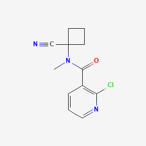 The synthesis of 2-chloro-N-(1-cyanocyclobutyl)-N-methylpyridine-3-carboxamide typically involves multiple steps, starting with the preparation of intermediate compounds. One common synthetic route involves the reaction of 2-chloropyridine-3-carboxylic acid with N-methylamine to form N-methyl-2-chloropyridine-3-carboxamide. This intermediate is then reacted with 1-cyanocyclobutyl chloride under controlled conditions to yield the final product.