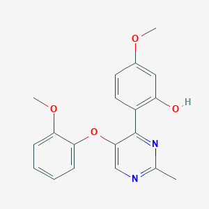 The synthesis of 5-Methoxy-2-[5-(2-methoxyphenoxy)-2-methylpyrimidin-4-yl]phenol typically involves multiple steps, starting with the preparation of intermediate compounds. One common method involves the reaction of 2-methoxyphenol with 2-chloro-5-methylpyrimidine in the presence of a base such as sodium hydride in a solvent like dimethylformamide (DMF). The reaction is carried out under an inert atmosphere, typically argon, and heated to around 125°C for 24 hours .