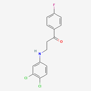 The synthesis of 3-(3,4-Dichloroanilino)-1-(4-fluorophenyl)-1-propanone typically involves the reaction of 3,4-dichloroaniline with 4-fluorobenzaldehyde under specific conditions. The reaction is often carried out in the presence of a base, such as sodium hydroxide, and a solvent, such as ethanol. The mixture is heated to facilitate the reaction, resulting in the formation of the desired compound.