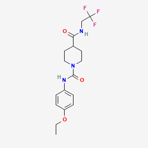 The synthesis of N1-(4-ethoxyphenyl)-N4-(2,2,2-trifluoroethyl)piperidine-1,4-dicarboxamide typically involves multiple steps, starting from readily available starting materials. The key steps include the formation of the piperidine ring, introduction of the ethoxyphenyl group, and the incorporation of the trifluoroethyl group. Specific reaction conditions such as temperature, solvents, and catalysts are optimized to achieve high yields and purity.