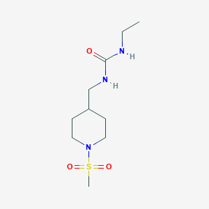 3-ethyl-1-[(1-methanesulfonylpiperidin-4-yl)methyl]urea is classified as a urea derivative characterized by the presence of a urea functional group (-NH-CO-NH-) linked to a substituted piperidine ring bearing a methanesulfonyl moiety. Urea derivatives are broadly defined by their core urea functionality, which is critical for hydrogen bonding and molecular recognition in biological systems. This compound fits within the subclass of sulfonylated piperidinyl ureas, combining sulfonamide and urea pharmacophores, which are known to enhance binding affinity and selectivity in drug-target interactions.