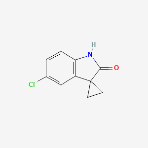 The synthesis of 5’-Chlorospiro[cyclopropane-1,3’-indolin]-2’-one typically involves the formation of the spirocyclic structure through cyclization reactions. One common method involves the reaction of a suitable indoline derivative with a cyclopropane precursor under specific conditions that promote the formation of the spirocyclic ring. For example, the use of strong acids or bases as catalysts can facilitate the cyclization process.
