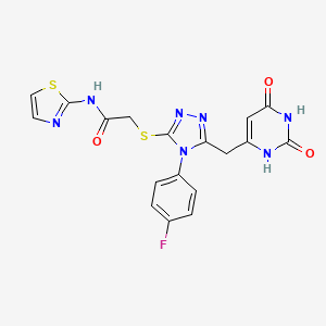 2-((5-((2,6-dioxo-1,2,3,6-tetrahydropyrimidin-4-yl)methyl)-4-(4-fluorophenyl)-4H-1,2,4-triazol-3-yl)thio)-N-(thiazol-2-yl)acetamide is a useful research compound. Its molecular formula is C18H14FN7O3S2 and its molecular weight is 459.47. The purity is usually 95%.