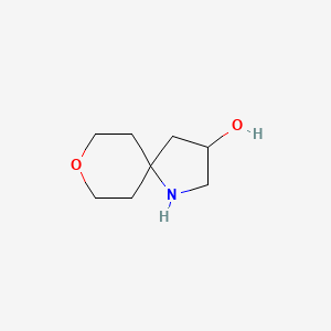 The 8-Oxa-1-azaspiro[4.5]decan-3-ol scaffold is increasingly utilized in synthetic chemistry as a chiral building block for the assembly of more complex molecules. Spirocyclic scaffolds are prized in drug discovery for their inherent three-dimensional nature, which allows for the projection of functional groups in multiple directions, potentially leading to better interactions with biological targets compared to flatter aromatic systems. tandfonline.comresearchgate.net The rigidity of the spirocyclic core, composed of five- and six-membered rings, limits the number of possible conformations, which is a desirable trait in structure-based drug design. tandfonline.com