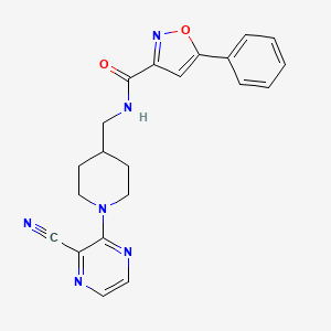 N-((1-(3-cyanopyrazin-2-yl)piperidin-4-yl)methyl)-5-phenylisoxazole-3-carboxamide is a complex organic compound that has garnered attention for its potential biological activities. This article aims to provide a comprehensive overview of its synthesis, biological properties, and research findings related to its pharmacological effects.