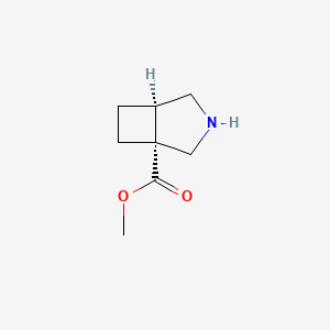 Methyl (1R,5R)-3-azabicyclo[3.2.0]heptane-1-carboxylate is a bicyclic compound featuring a 3-azabicyclo[3.2.0]heptane core with a methyl ester group at position 1. It serves as a versatile small-molecule scaffold in medicinal chemistry and drug discovery due to its rigid bicyclic structure, which can mimic bioactive conformations. Key properties include: