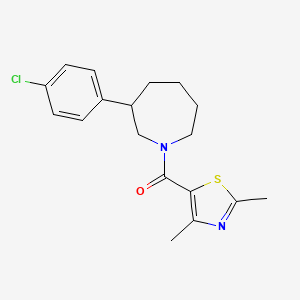 The mechanism of action of (3-(4-Chlorophenyl)azepan-1-yl)(2,4-dimethylthiazol-5-yl)methanone involves its interaction with specific molecular targets, such as enzymes or receptors. The compound may inhibit or activate these targets, leading to a cascade of biochemical events that result in its observed effects. The exact pathways involved depend on the specific application and the biological system being studied.