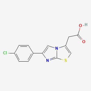 [6-(4-Chlorophenyl)imidazo[2,1-b][1,3]thiazol-3-yl]acetic acid is a heterocyclic compound that has garnered attention in medicinal chemistry due to its potential biological activities, particularly in oncology. This compound features a unique dual-ring system that combines imidazole and thiazole functionalities, which may enhance its interaction with biological targets.