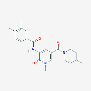 3,4-Dimethyl-N-(1-methyl-5-(4-methylpiperidine-1-carbonyl)-2-oxo-1,2-dihydropyridin-3-yl)benzamide is a synthetic compound that has garnered attention for its potential biological activities. This article reviews the compound's pharmacological properties, mechanisms of action, and relevant case studies.