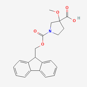 1-{[(9H-fluoren-9-yl)methoxy]carbonyl}-3-methoxypyrrolidine-3-carboxylic acid is a synthetic organic compound with the molecular formula C21H21NO5. It is characterized by the presence of a fluorenylmethoxycarbonyl (Fmoc) protecting group, which is commonly used in peptide synthesis to protect amino groups during chemical reactions .
