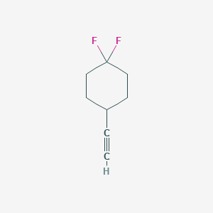 The 1,1-difluorocyclohexane (B1205268) moiety, a core component of the title compound, is utilized in the design of modern agrochemicals. For instance, the related structure, 1-(4,4-difluorocyclohexyl)-N,5-dimethyl-N-pyridazin-4-yl-pyrazole-4-carboxamide, has been investigated for its role in nitrification inhibitors. google.com The inclusion of the difluorocyclohexyl group in such molecules is associated with advantageous properties, including reduced volatility and enhanced environmental safety profiles. google.com The ethynyl (B1212043) group on 4-Ethynyl-1,1-difluorocyclohexane serves as a versatile chemical handle, allowing for its conjugation to other molecular scaffolds through reactions like 'click' chemistry or Sonogashira coupling, thereby enabling the synthesis of novel and complex active ingredients.