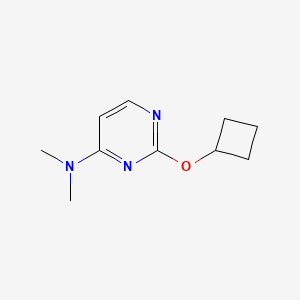 The synthesis of 2-cyclobutoxy-N,N-dimethylpyrimidin-4-amine typically involves the reaction of cyclobutanol with N,N-dimethylpyrimidin-4-amine under specific conditions. The reaction is usually carried out in the presence of a base, such as sodium hydride, to facilitate the formation of the cyclobutoxy group. The reaction conditions, including temperature and solvent, are optimized to achieve high yields and purity of the desired product.